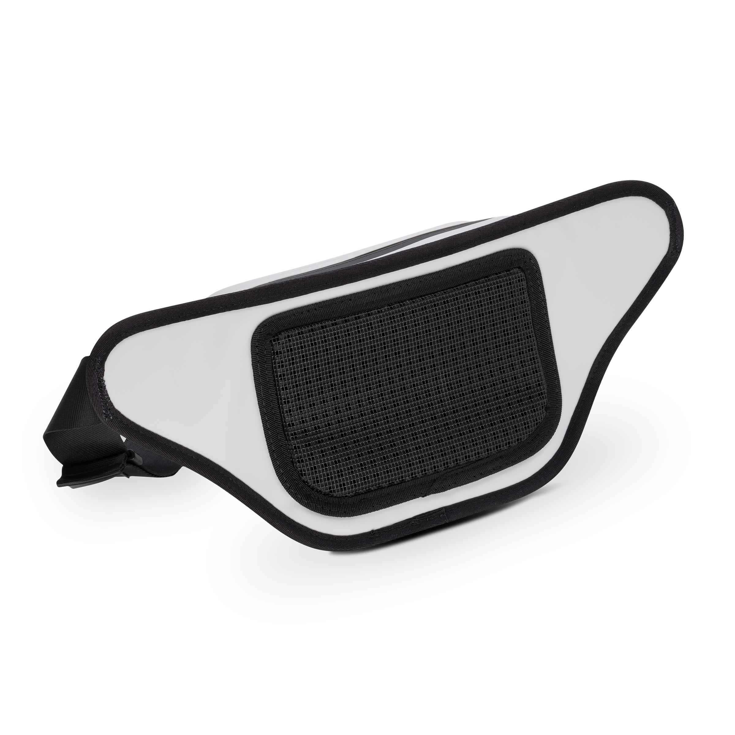 "Ihr idealer Reisebegleiter: Die wasserabweisende Audi Hüfttasche in Hellgrau überzeugt mit einem großen Hauptfach und einem kleinen Außenfach - ideal für unterwegs.