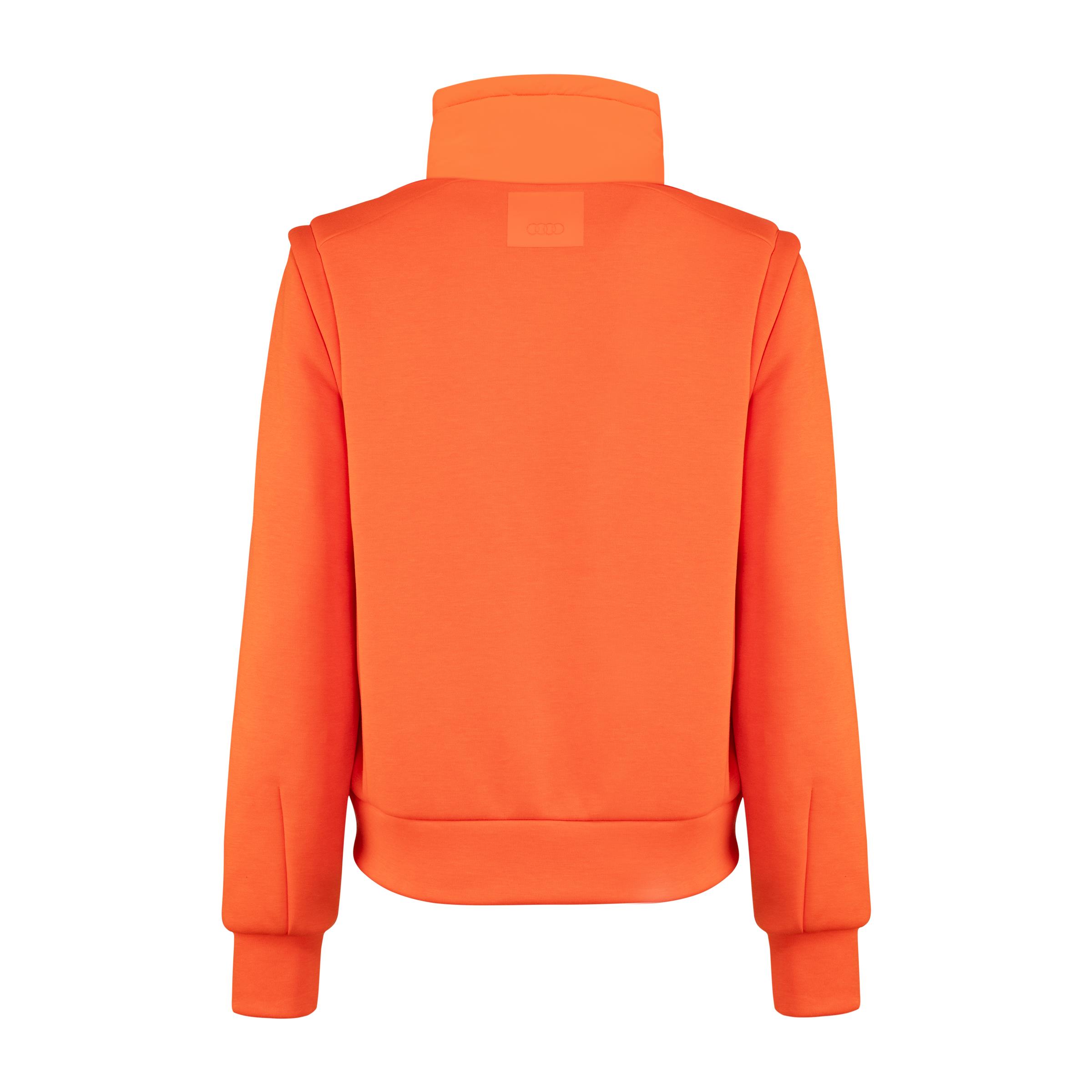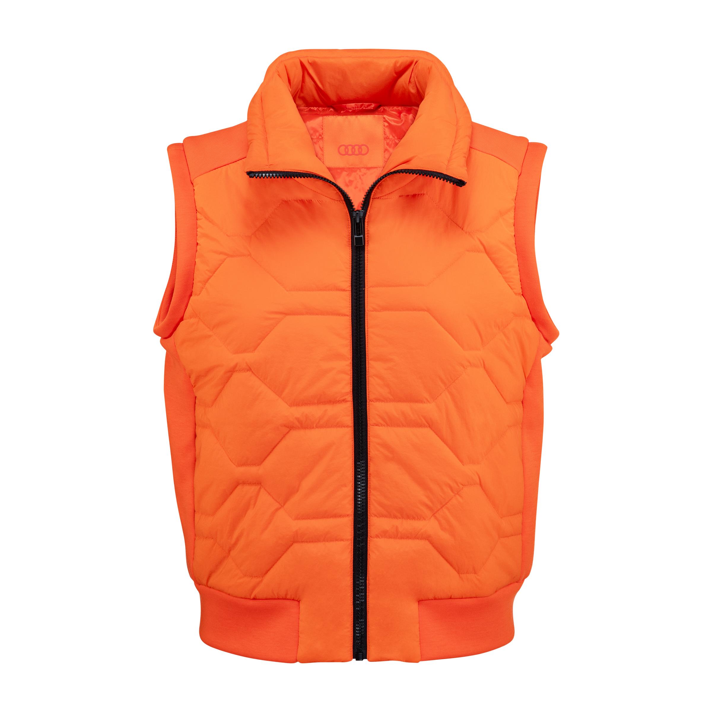 Stilvoll und vielseitig: Die gefütterte Audi Hybridjacke in Orange überzeugt in modernem Steppdesign und mit abzippbaren Ärmeln.