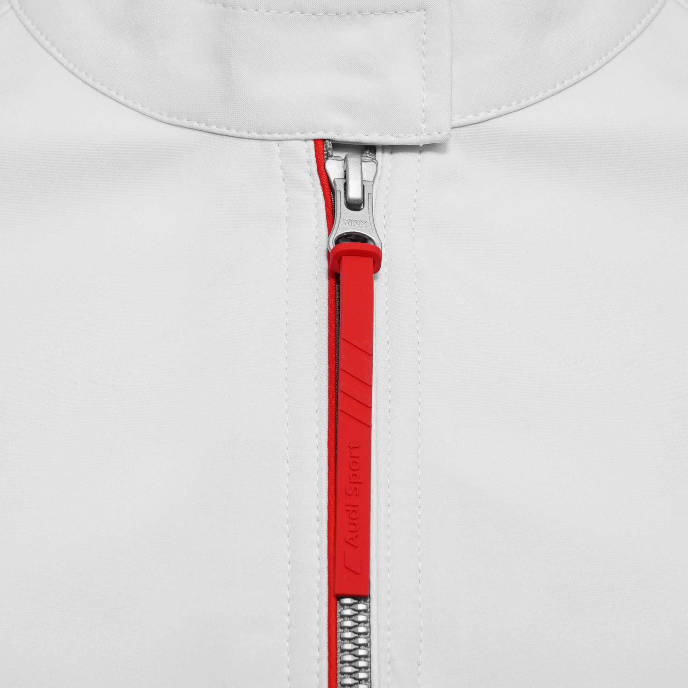 - Audi Ringe auf dem Nackenlabel innen, Audi Sport Logo auf dem Zipperpuller sowie auf dem roten Streifen am Rücken