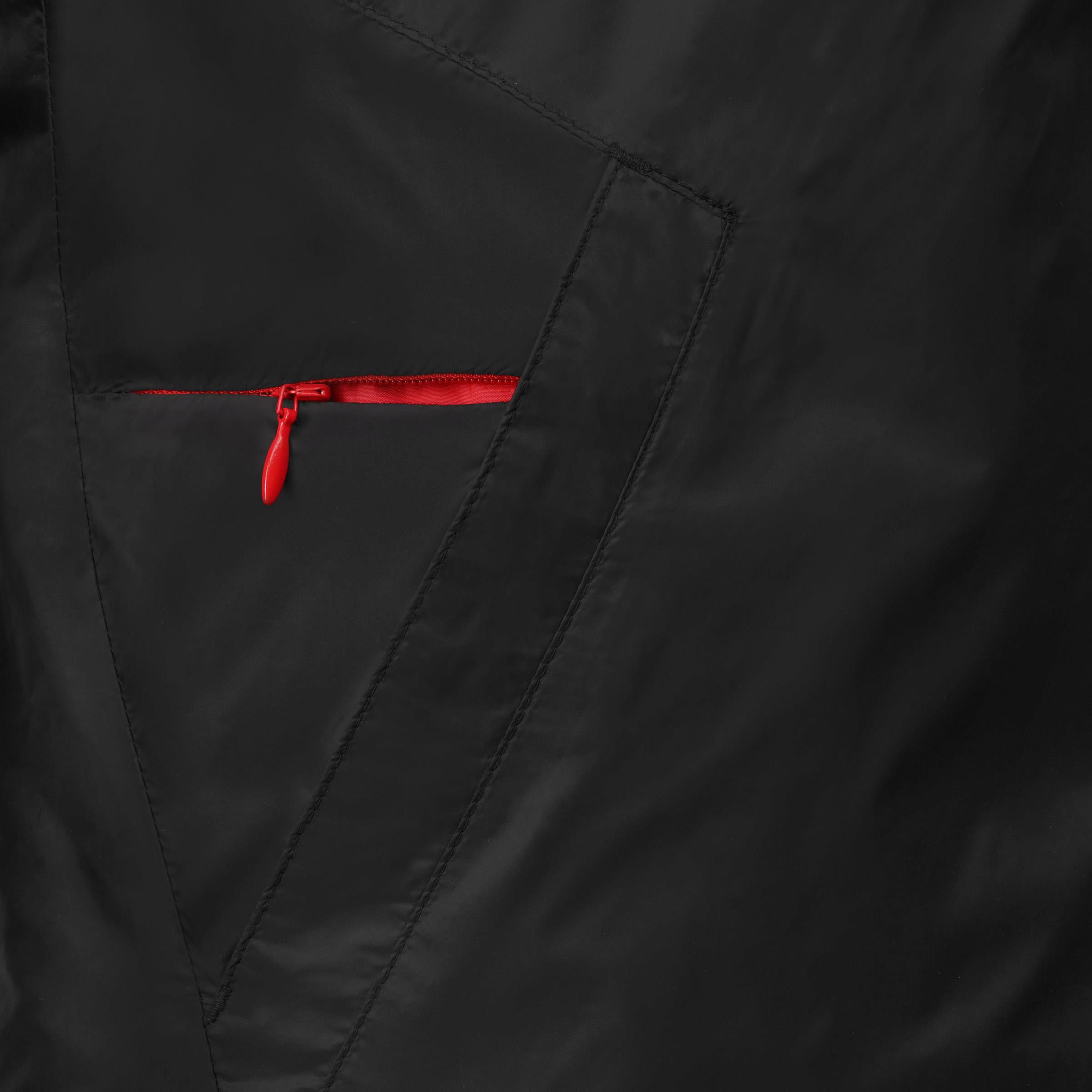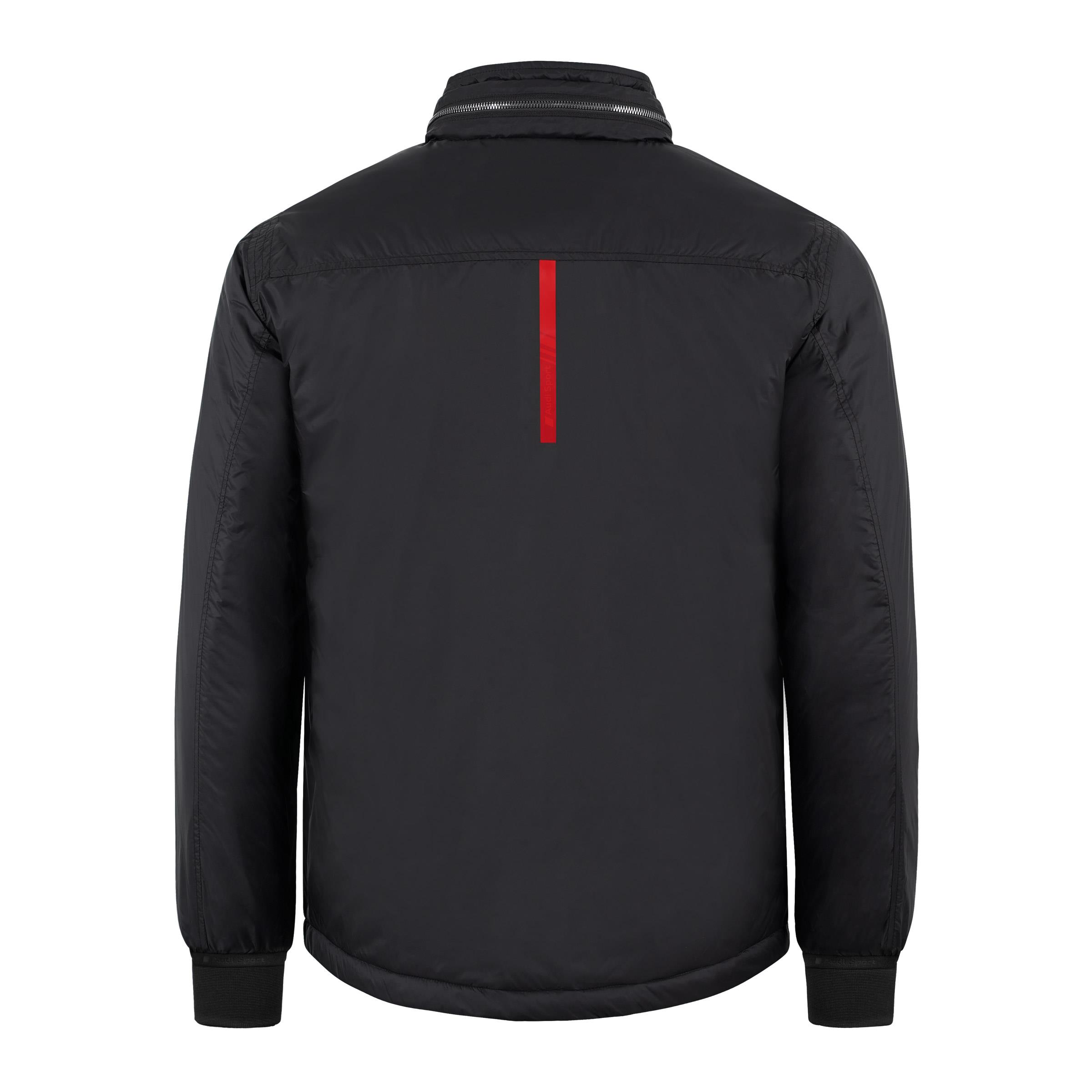 - Audi Ringe auf dem Nackenlabel innen, Audi Sport Logo auf dem Zipperpuller sowie auf dem Paspel am Ärmelbündchen und dem roten Kontraststreifen auf dem oberen Rücken