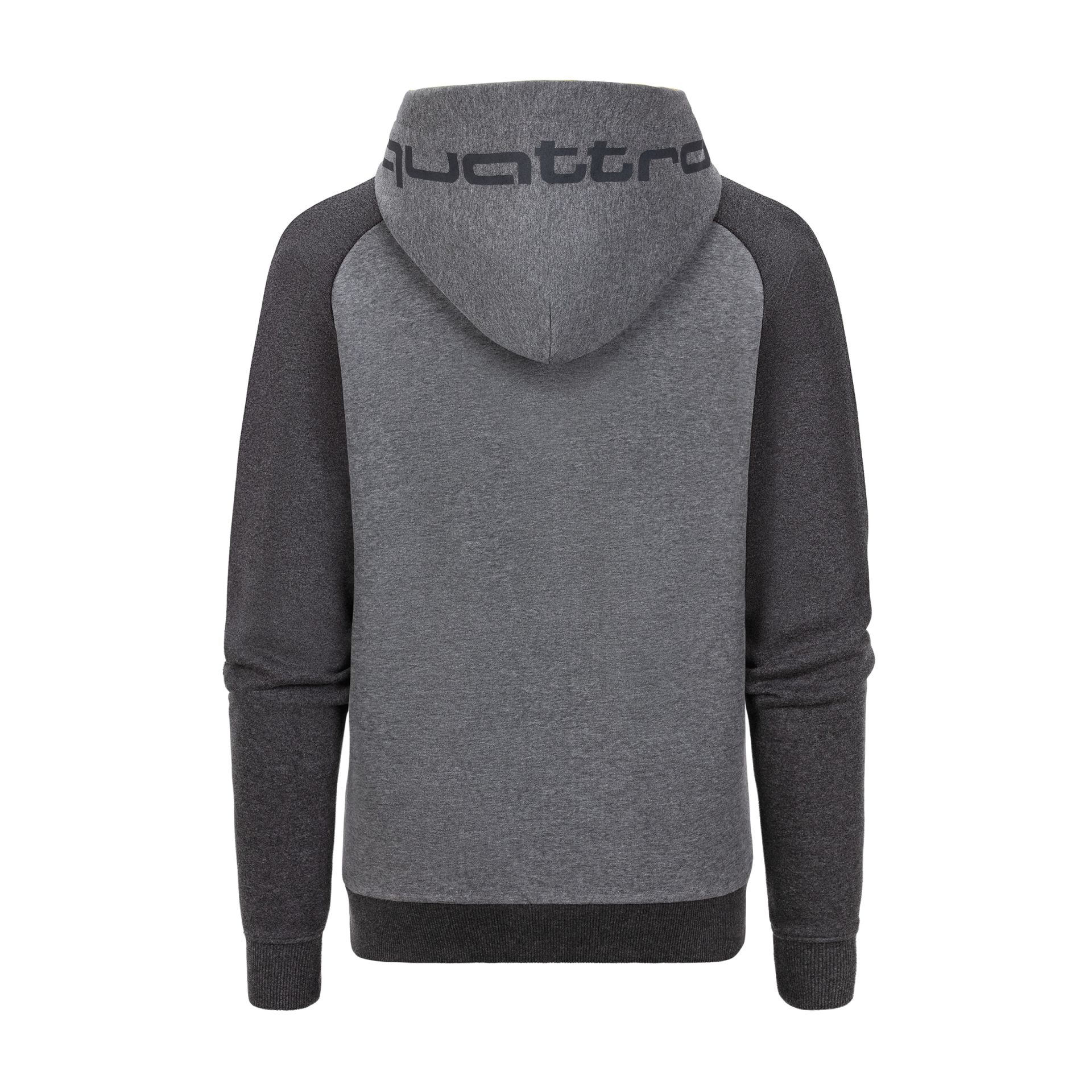 - Branding: quattro Logo auf der linken Brust und plakativ auf der Kapuze hinten