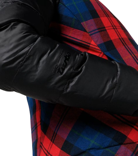 Die Turbo No. 1 Kollektion liefert Porsche-Performance mit Karomuster als Hommage an das Interieur des ersten 911 Turbo. Die horizontal gesteppte Wendejacke für Damen ist so stlyisch wie bequem. Die eine Seite begeistert mit cleanem Design, die andere mit charakteristischem Karomuster. Maximaler Komfort durch einen leicht wattierten, hohen Stehkragen mit eingearbeiteten Kordeln und die Boxy-shape-Form ist garantiert. Die beiden Porsche-Schriftzüge, eingestickt auf der linken Brust und als 3D-Print unterhalb des Kragens auf der Rückseite, und das Story Label auf der unteren linken Saumkante sind wahre Design-Highlighs. Das 3D-Porsche/Turbo-Branding auf dem linken Ärmel runden den stilvollen Look der Jacke ab.