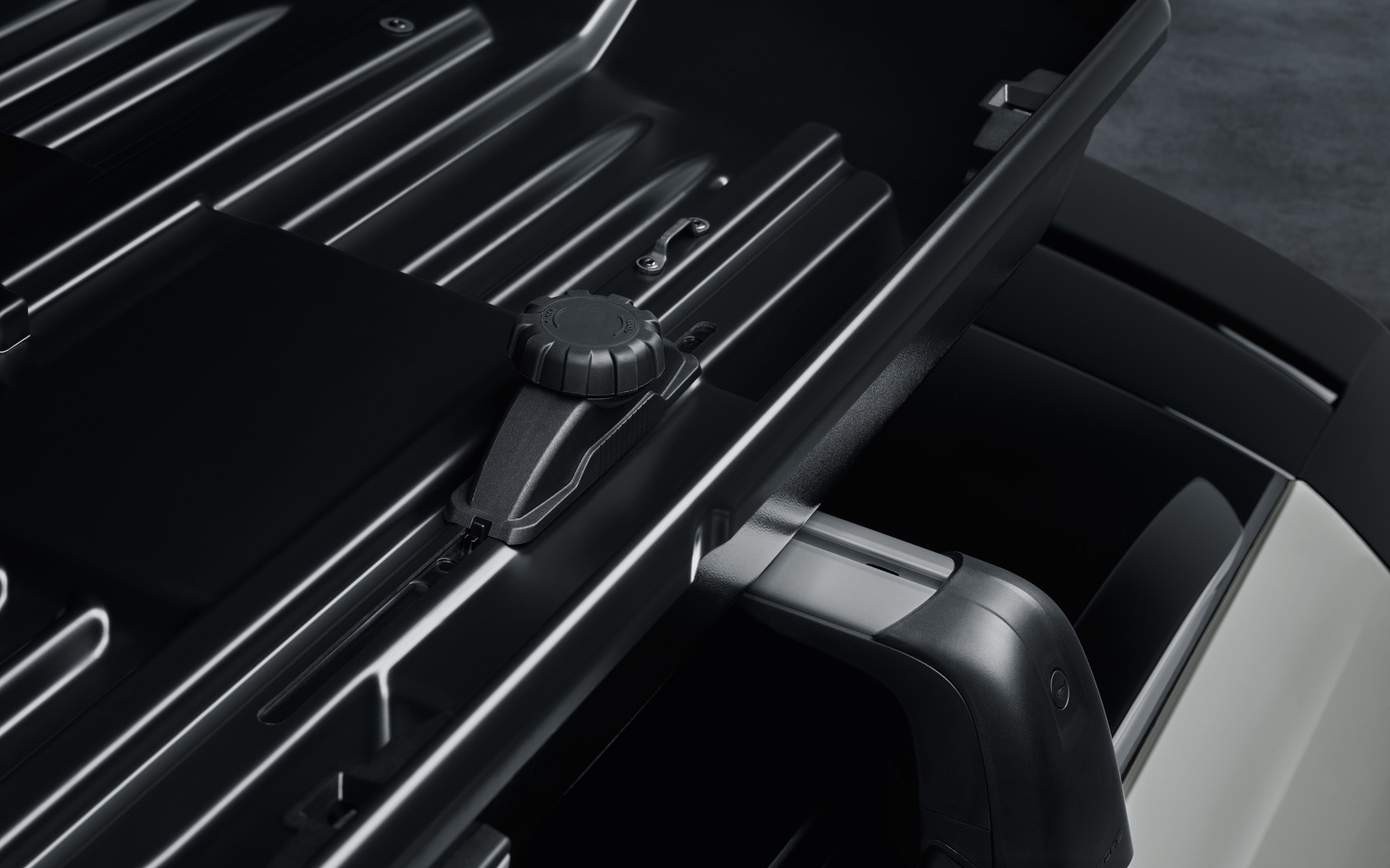 So kombiniert die Performance-Dachbox Sportlichkeit mit individuellem Design und Funktionalität: Im schwarzen Hochglanzdesign mit silbernem „PORSCHE“ Schriftzug am Heck entspricht die aerodynamische Kunststoffbox ganz dem exklusiven Stil Ihres Porsche. Besonderes Highlight: Die in Schwarz (hochglanz) lackierten seitlichen Blades sind austauschbar und sowohl in ausgewählten Exterieurfarben als auch in einer individuell lackierbaren Variante erhältlich. So passt sich die Porsche Perfomance-Dachbox ganz einfach Ihrem Fahrzeug an. Mit einem Volumen von 480 Litern und einer möglichen Zuladung von bis zu 75 kg bietet sie viel zusätzlichen Stauraum für das nächste Abenteuer. Dank des praktischen Power-Click-Systems ist die Anbringung der Dachbox schnell und unkompliziert erledigt. Und durch beidseitiges Öffnen und den beigelegten Befestigungsgurten gestaltet sich die Beladung äußerst komfortabel.