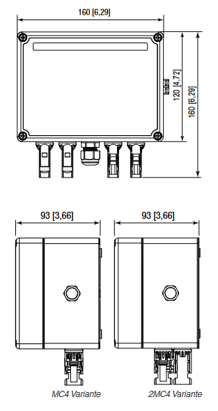 - Vorkonfektionierte Anschlussbox 1100 V DC,