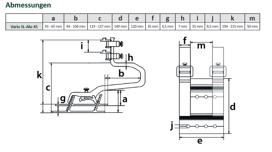 Produktdetails SL-Rack Dachhaken Vario SL-Alu 45-65 Aluminium